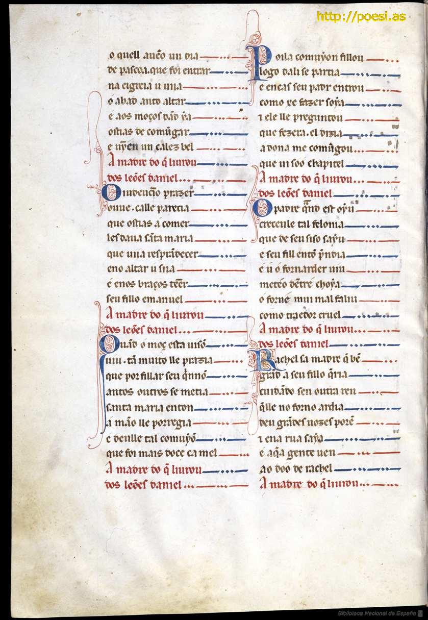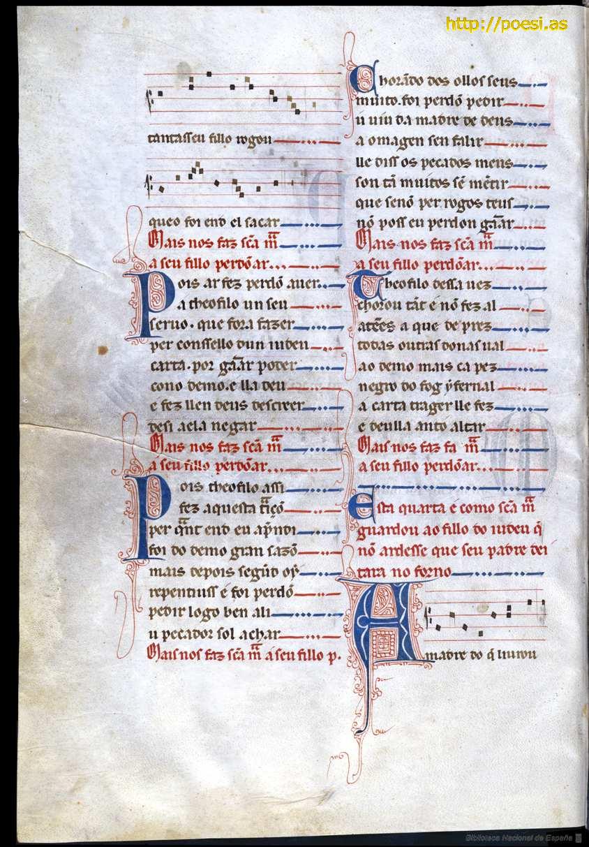 CANTIGA IV. Cantigas de Santa María. Ed. facs. del Códice de Toledo (TO), Biblioteca Nacional de España. Madrid, (Mss. 10.069)