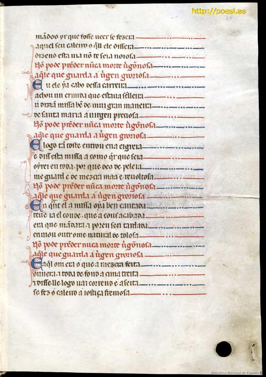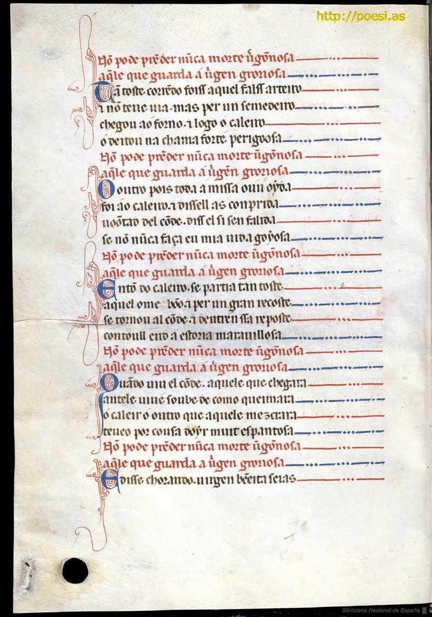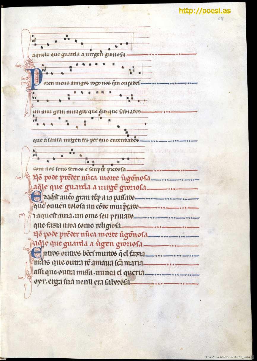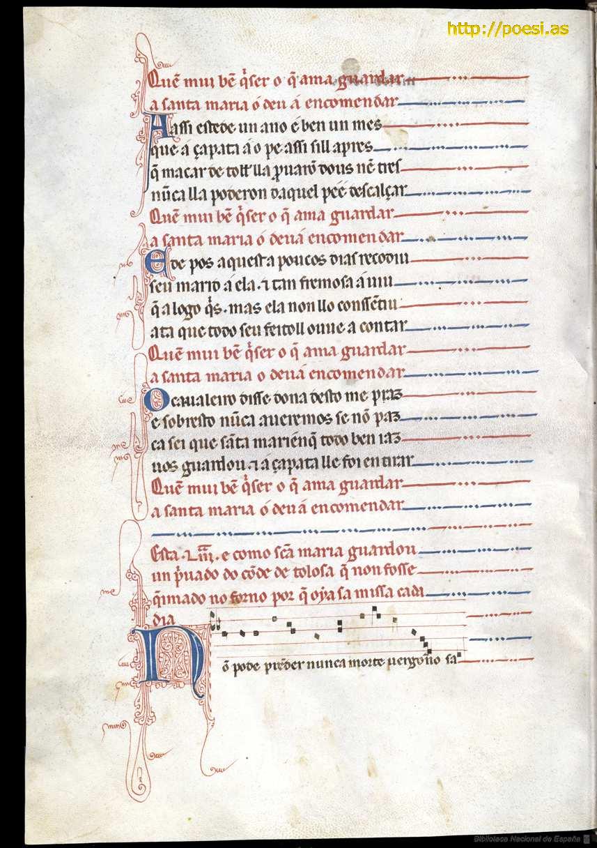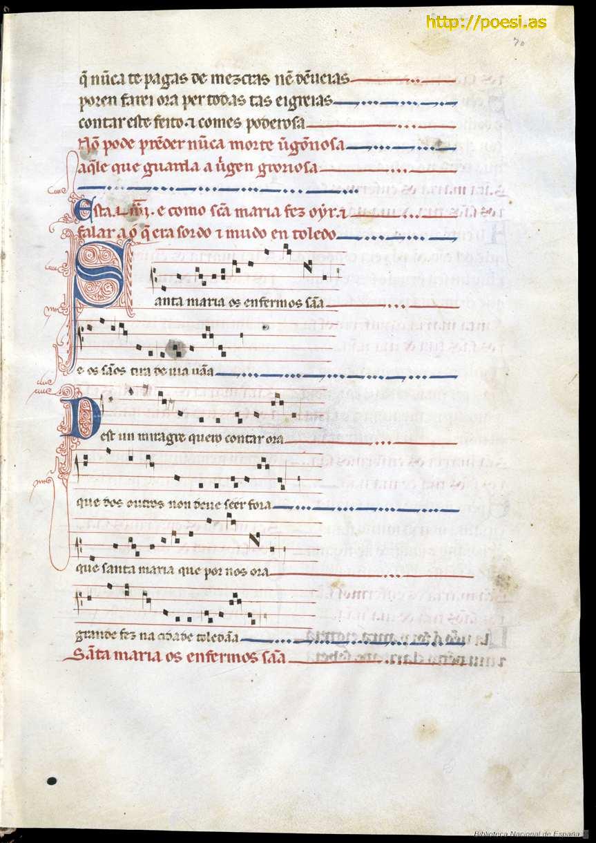 Incluido en Cantigas de Santa María. Códice de Toledo (TO), Biblioteca Nacional de España. Madrid, (Mss. 10.069)