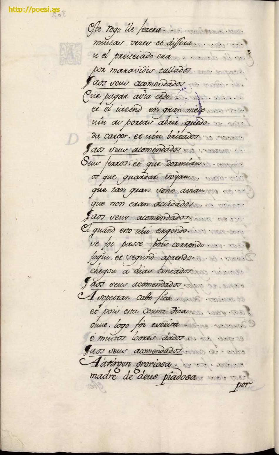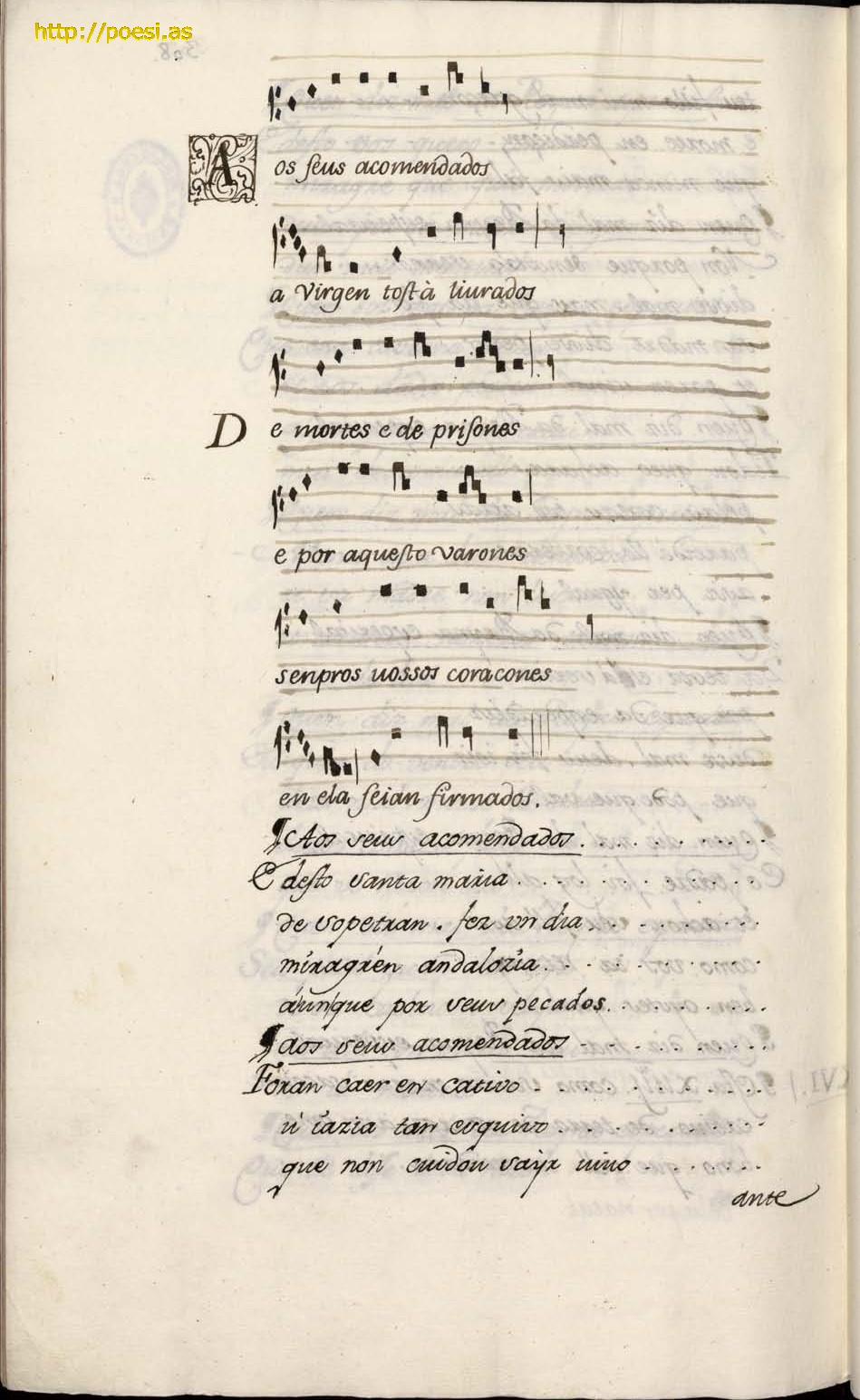 Incluido en Cantigas de Santa María de D. Alonso Décimo, llamado el Sabio; ofrecidas a la Reina Nuestra Señora por el P. Andrés Burriel de la Compañía de Jesús. Biblioteca Nacional de España. Madrid, (Mss. 13.055)