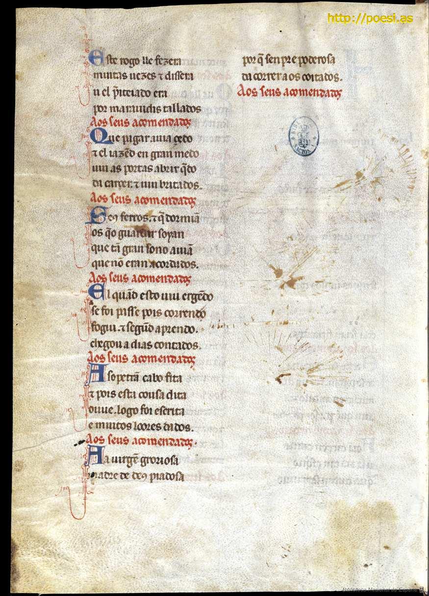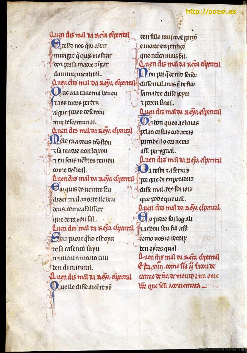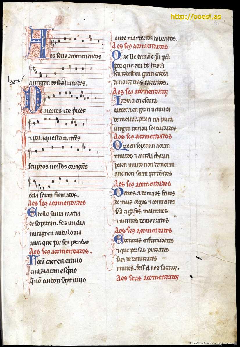 Incluido en Cantigas de Santa María. Códice de Toledo (TO), Biblioteca Nacional de España. Madrid, (Mss. 10.069)