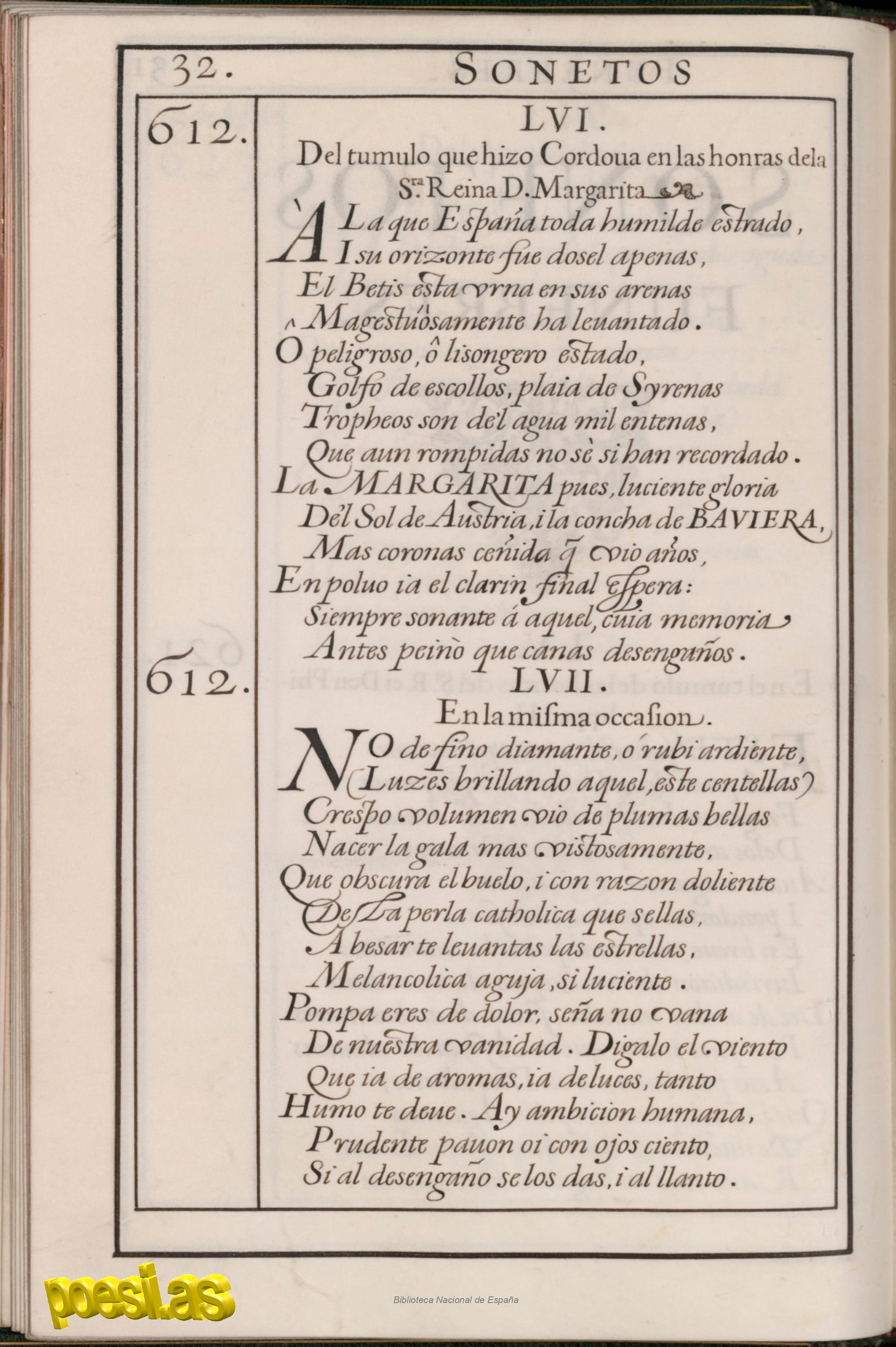 Manuscrito: DEL TÚMULO QUE HIZO CÓRDOBA EN LAS HONRAS DE LA SEÑORA REINA DOÑA MARGARITA