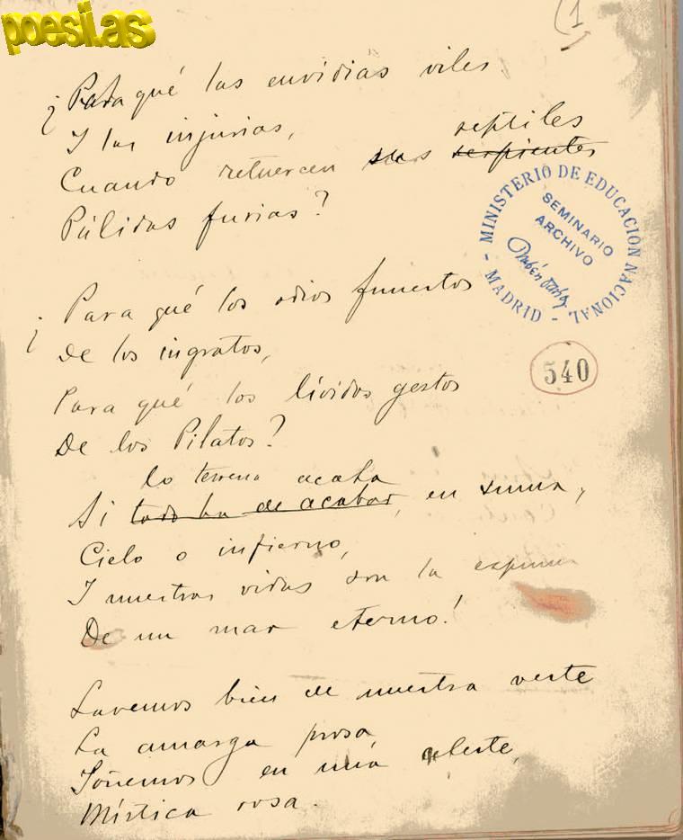Manuscrito Poema del Otoño. Dedicatoria. Estrofa 12 en adelante.