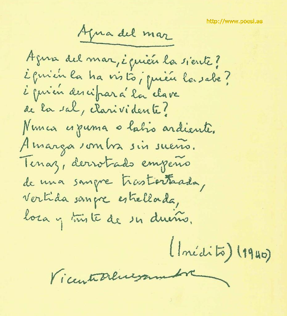 Manuscrito Vicente Aleixandre. Archivo José García Nieto